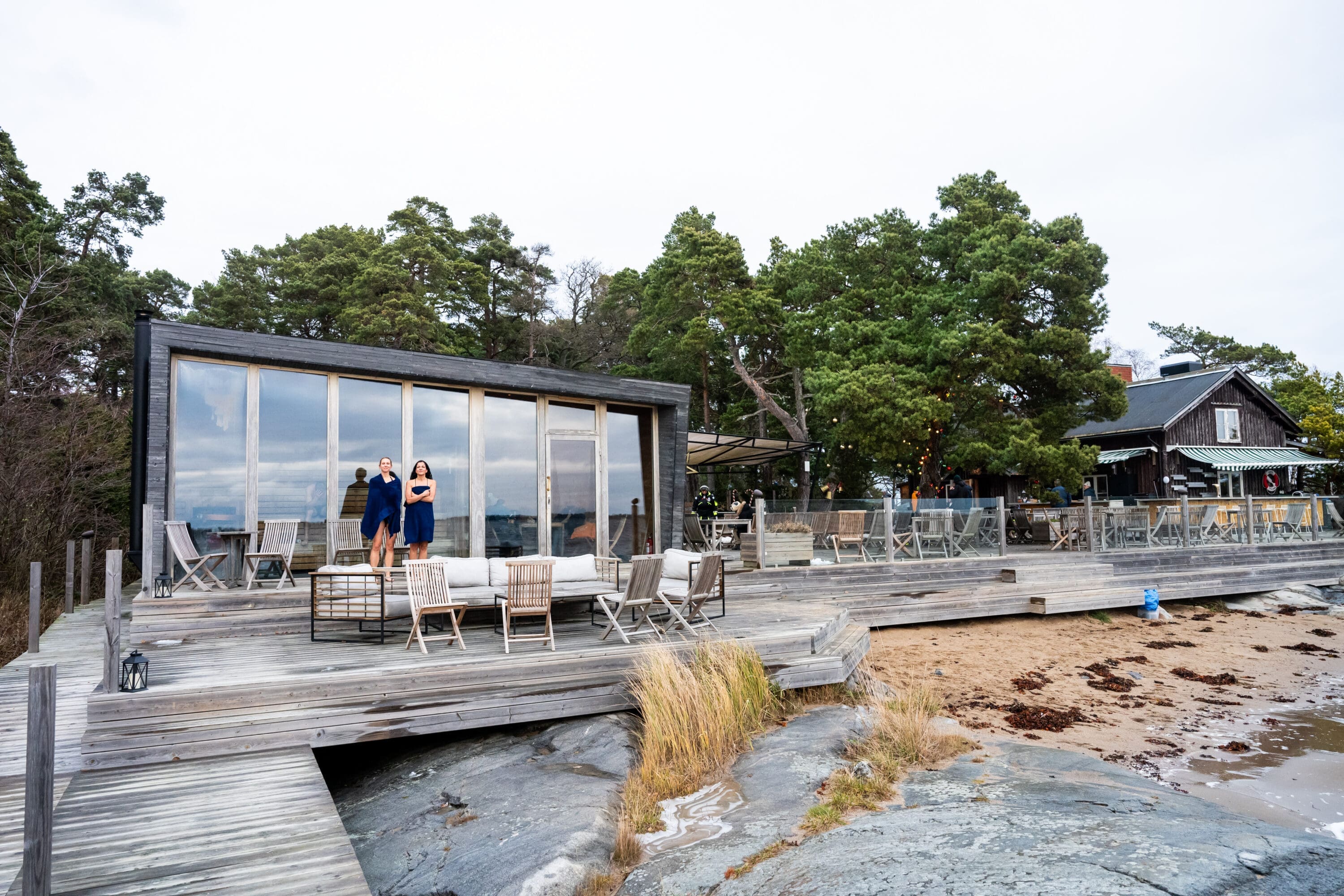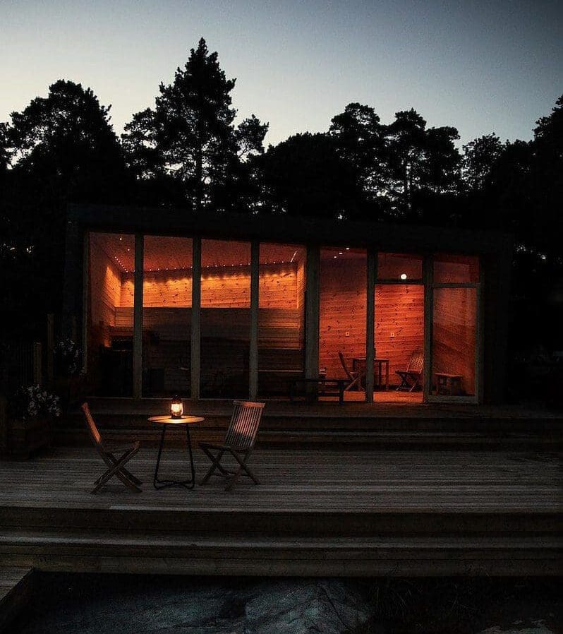 Bastun lämpar sig för grupper upp till 20 personer med lavar i fyra nivåer och ett relaxrum där ni kan ta en paus från den heta bastun eller kalla vattnet.
