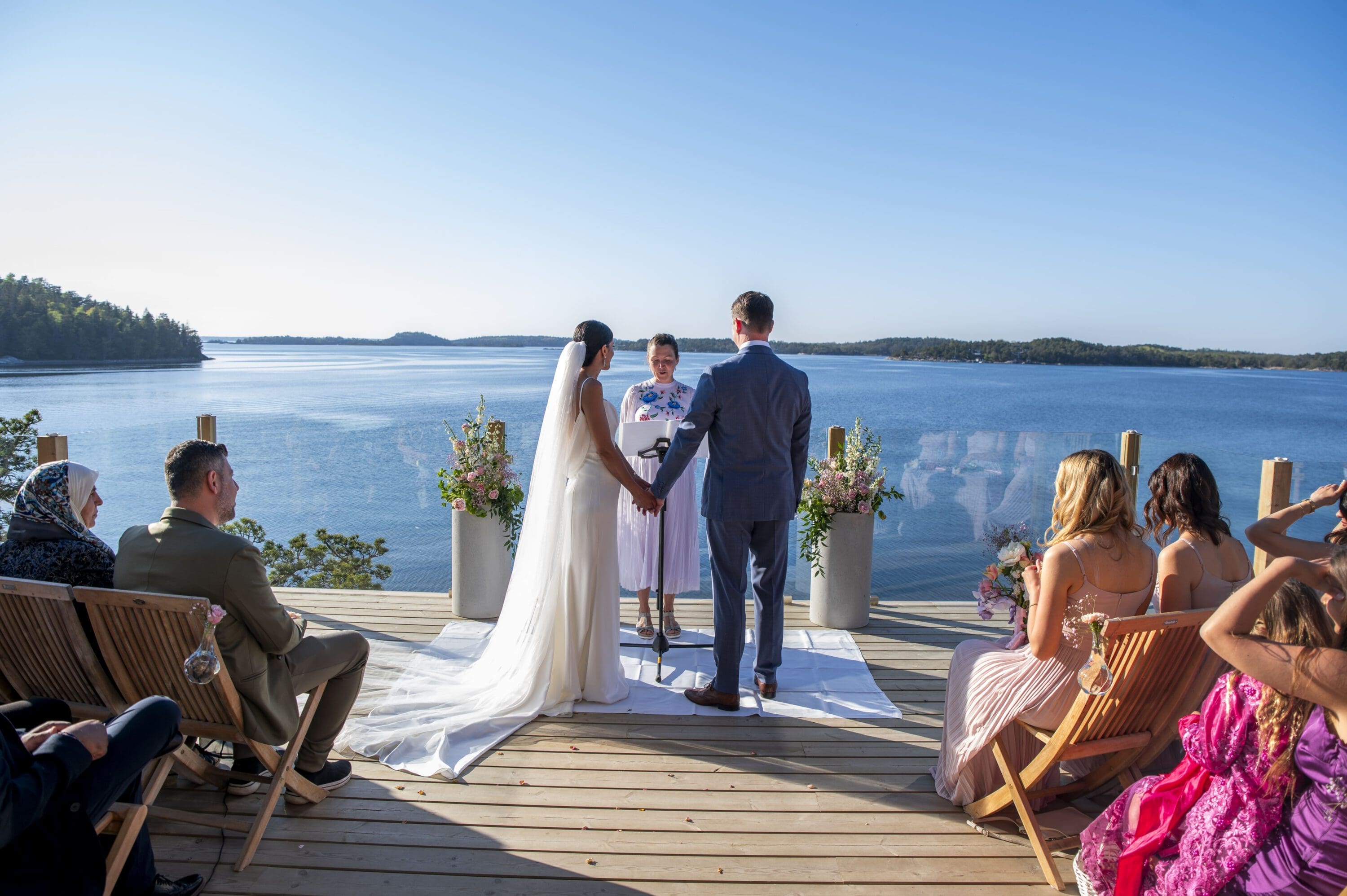 Ögonblicket har ett stort, vackert trädäck anpassat för vigsel, med storslagen utsikt över havet och solnedgången – en inramning som gör ceremonin lika minnesvärd som själva dagen.