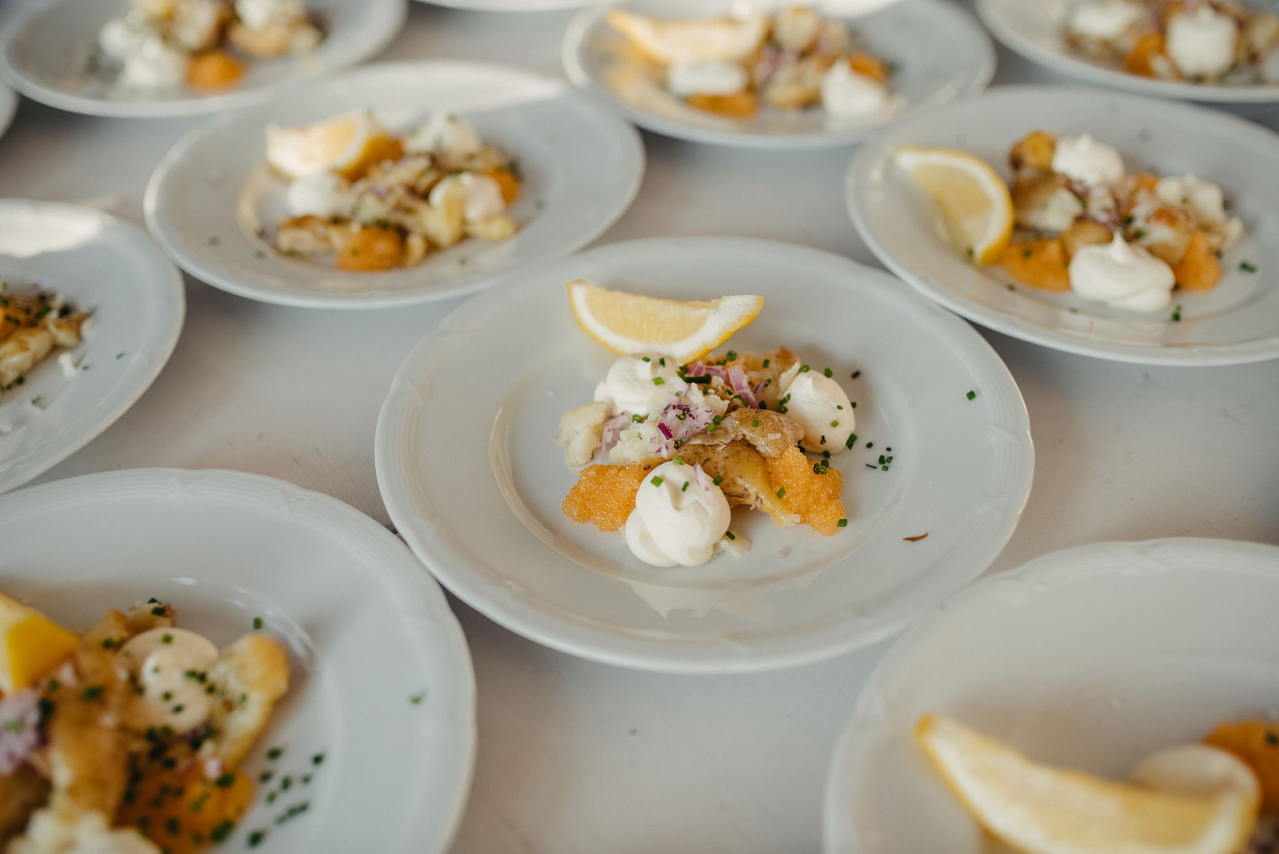 Vi erbjuder ett varierat utbud för alla måltider, från middagen på ankomstdagen till frukosten på avresedagen. Grunden är vår mycket uppskattade bröllopsmeny, som uppdateras varsamt från säsong till säsong.