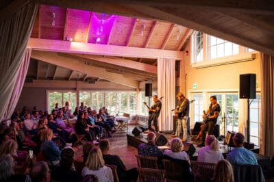 Efter middagen fortsätter kvällen i Ögonblicket, Idöborgs nya stora eventlokal för bröllop, fest och större arrangemang. Lokalen har ett stort trädäck med utsikt över havet och solnedgången, vilket gör den till en ovanligt stämningsfull plats för en sommarkonsert. När Uno Svenningson kliver upp på scenen möts publiken av en upplevelse där musiken får samspela med kvällsljuset, skärgården och känslan av att vara på en ö mitt i Stockholms skärgård.