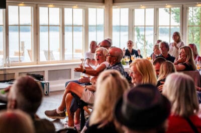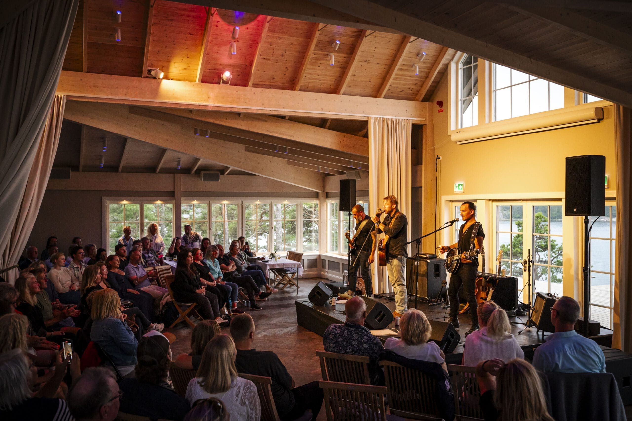 Efter middagen fortsätter kvällen i Ögonblicket, Idöborgs nya stora eventlokal för bröllop, fest och större arrangemang. Lokalen har ett stort trädäck med utsikt över havet och solnedgången, vilket gör den till en ovanligt stämningsfull plats för en sommarkonsert. När Sabina Ddumba kliver upp på scenen möts publiken av en upplevelse där musiken får samspela med kvällsljuset, skärgården och känslan av att vara på en ö mitt i Stockholms skärgård.
