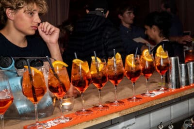 Kvällen börjar på Strandbaren, där du välkomnas med kanapéer och ett glas bubbel vid ankomst innan kvällens generösa grillbuffé tar vid. Här väntar en smakfull start på upplevelsen med skagen-snittar, asiatisk tonfisktartar, mozzarella- och tomatspett med balsamico samt baconlindade dadlar.