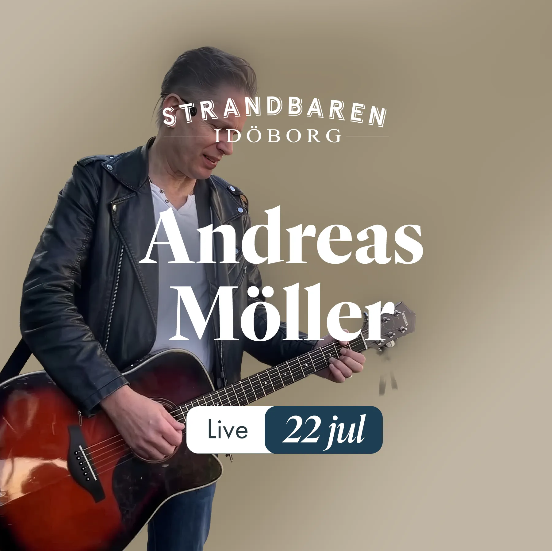 Välkommen till en stämningsfull sommarkväll på Strandbaren på Idöborg, där god mat, havsutsikt och levande musik möts på vårt mysiga trädäck i skärgården. Den 22 juli gästar Andreas Möller Strandbaren för en varm middagsspelning där svensk vistradition och sommarkänsla står i centrum.