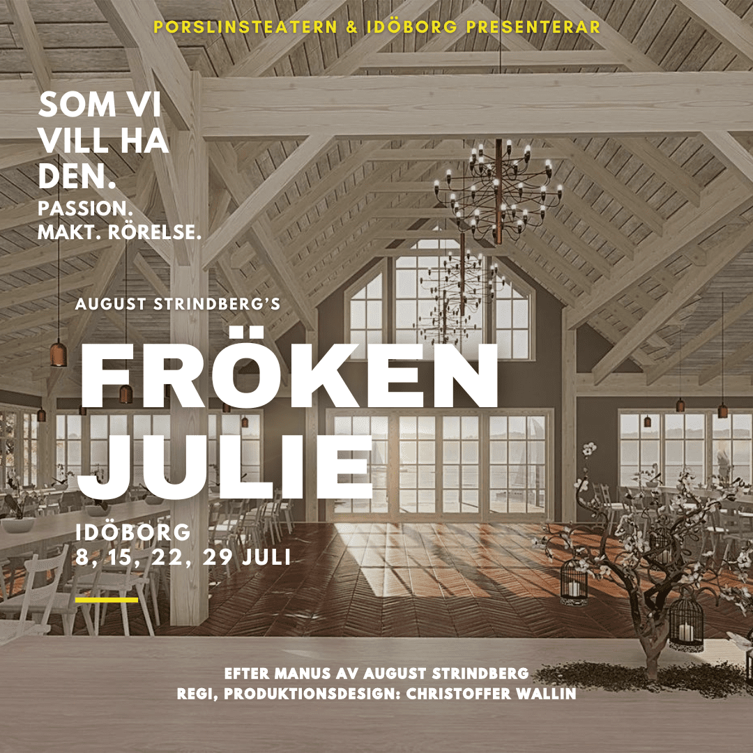 ”Fröken Julie” är en av vår tids största klassiker som kastar ljus på klassklyftor och mänskliga begär. Julie, en ung överklasskvinna, och Jean, hennes tjänare utforskar förbjuden kärlek och stridigheter som speglar samhällets normer och förväntningar, och leder till en våldsam kamp om makt, identitet och överlevnad. Vi vill att pjäsen får vara en psykologisk studie som lockar publiken in i en värld av emotionellt tumult och socialt drama, där ingenting är vad det verkar vara.
