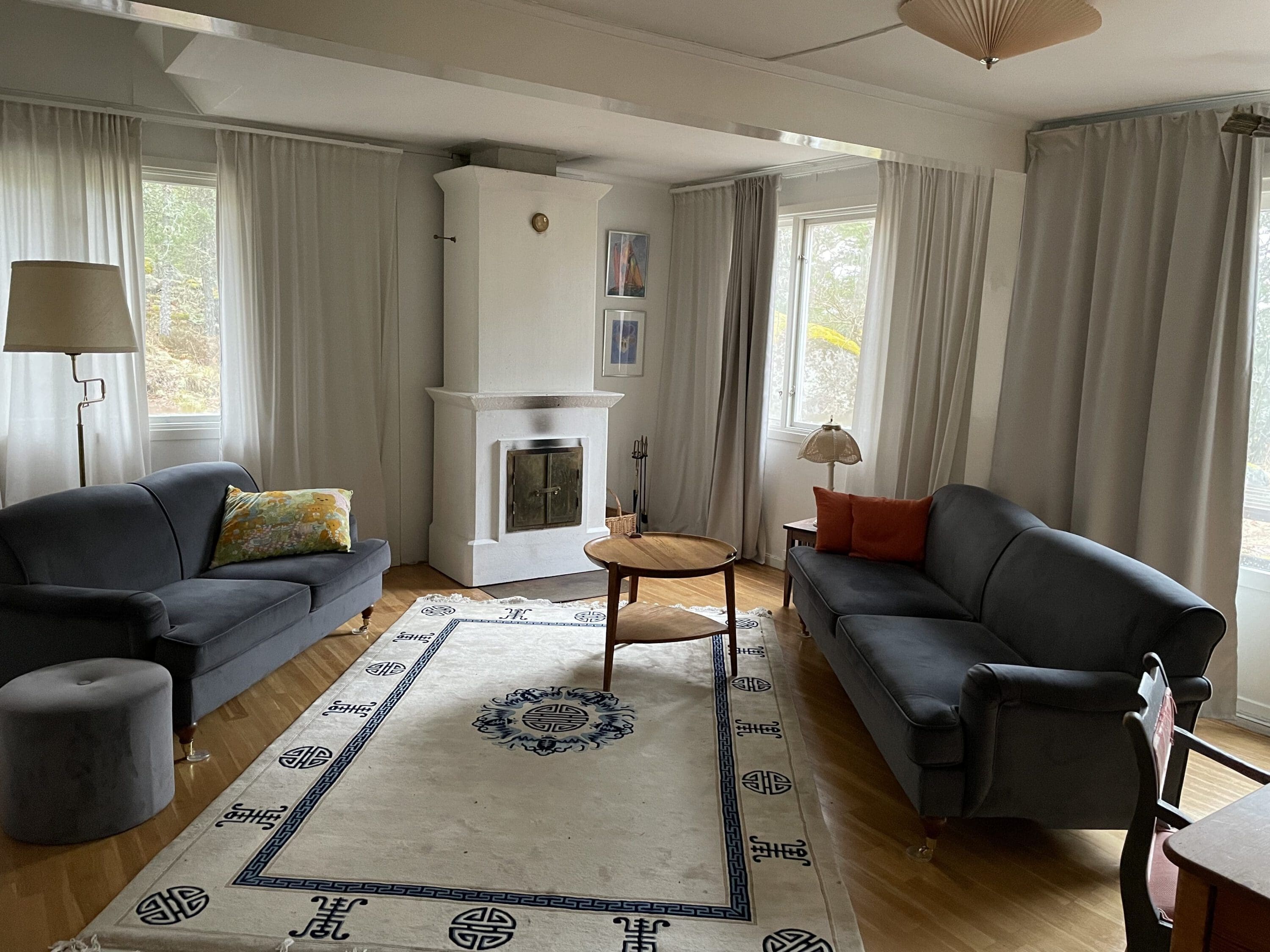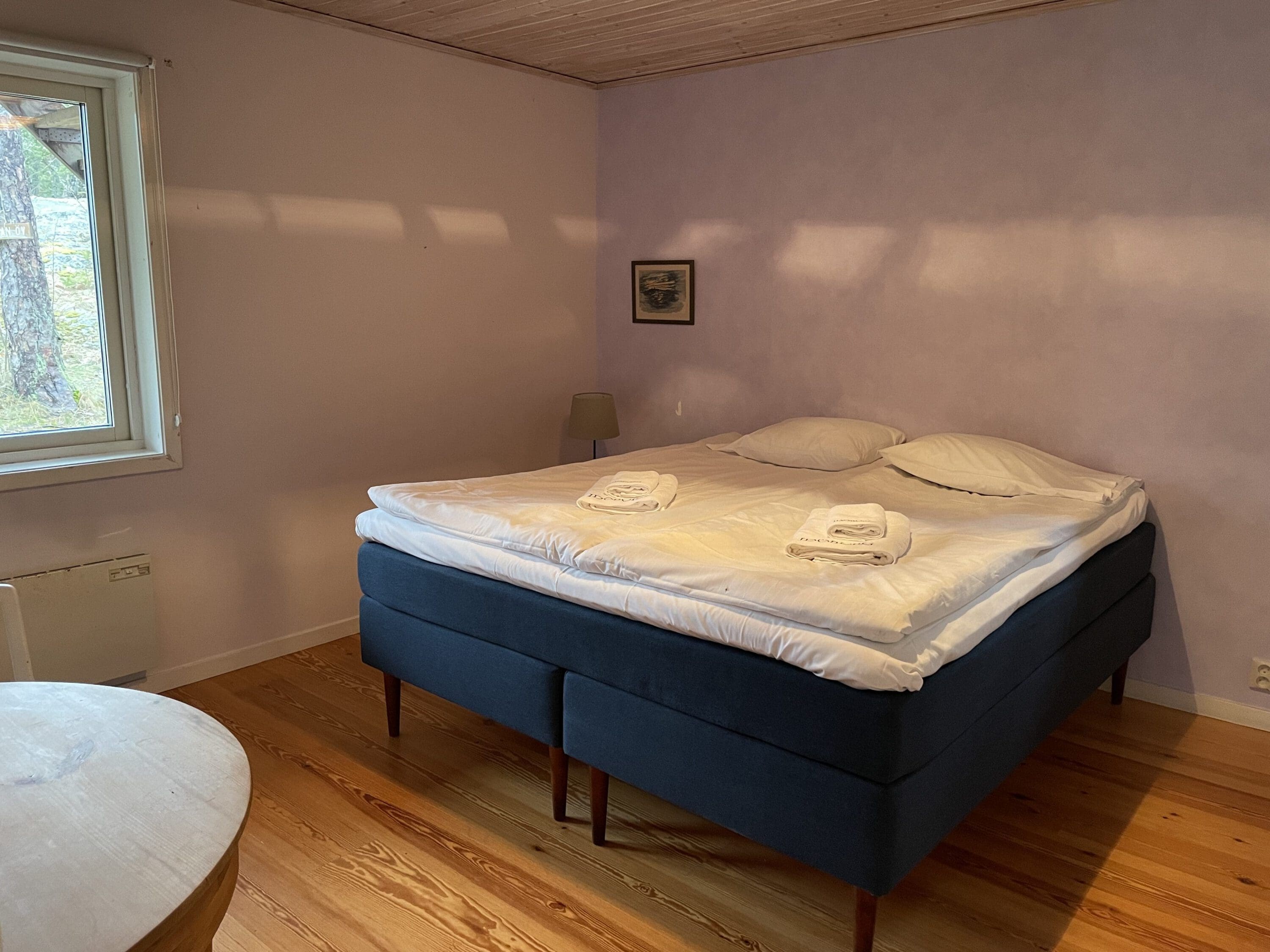 Här finns fyra sovrum med plats för 8 personer, ett kök, matsal med havsutsikt, ett badrum och ett trevligt vardagsrum med utsikt mot Dojon och gästhamnen. Utanför finns en gäststuga med två bäddplatser.